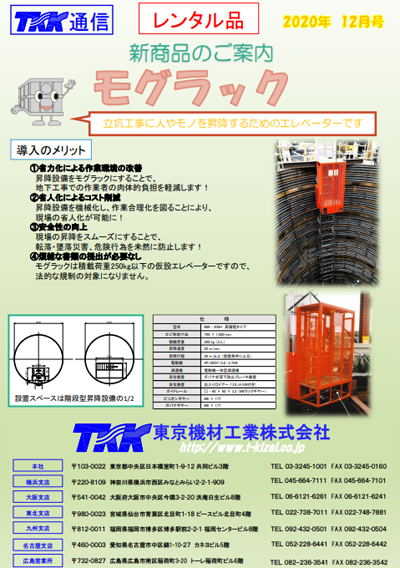 立坑に人やモノを昇降するための、仮設エレベーター。法的規制対象外のため煩雑な書類の提出が不要で、省スペースでの設置が可能です。